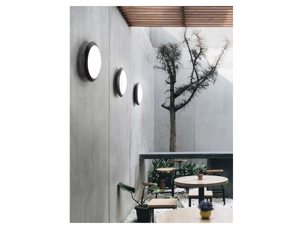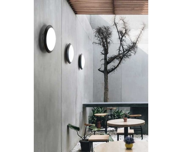 Diese Außenwand-Deckenleuchte der Marke Ondaluce ist ideal für die nächtliche Beleuchtung offener Räume. Sie hat eine klassische, aber zeitlose runde Form und eine Struktur aus robustem ABS-Kunststoff in verschiedenen Farben mit einem weißen Polycarbonat-Diffusor, einem hochwertigen Material, das eine hohe Leistung gewährleistet Zeit.