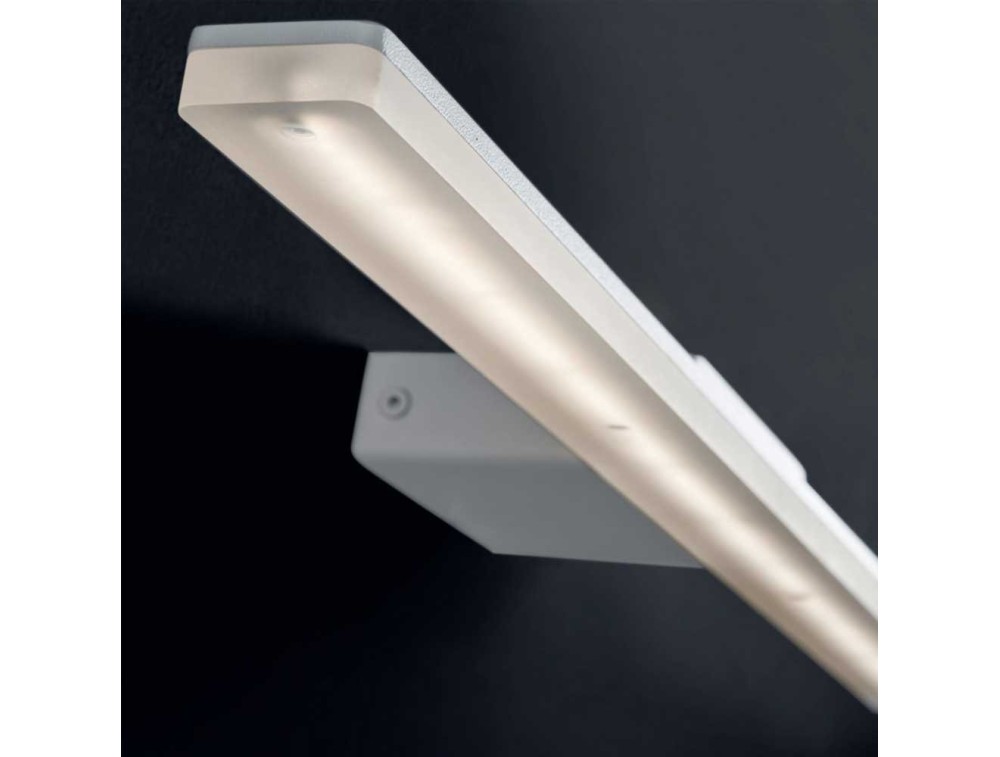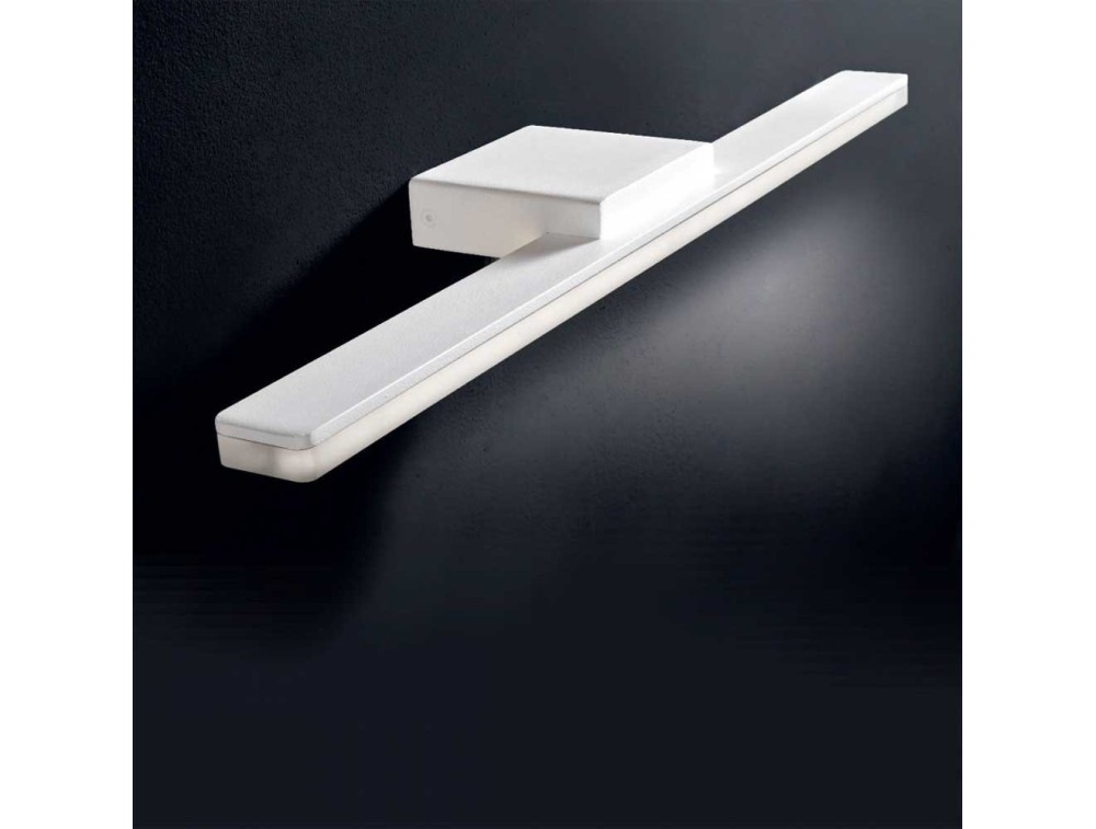 Spiegel-Wandleuchte mit weiß lackiertem Metallrahmen und Plexiglas-Diffusor.