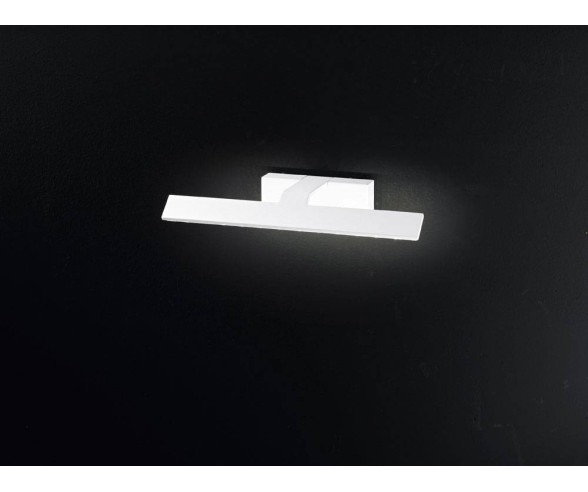 Kollektion von Lampen mit Struktur aus weiß lackiertem Metall. Die Produktlinie ist sauber und leicht und gewährleistet eine direkte Lichtemission. Der LED-Elektroblock bietet hohe Leistung bei sehr geringem Verbrauch. Wandleuchte ideal für Anwendungen auf Gemälden oder Spiegeln.