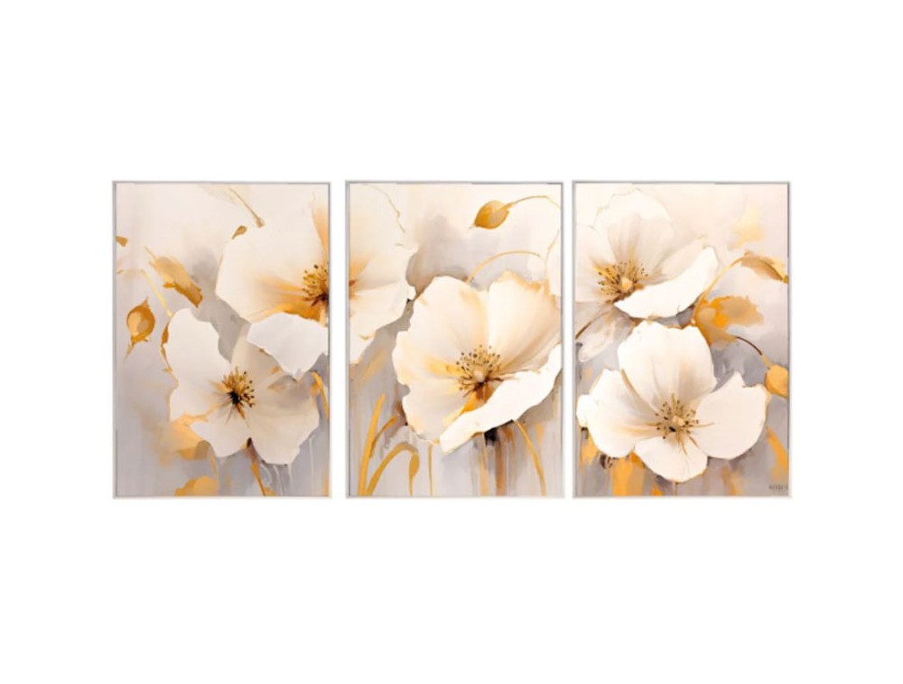 Blumenbild, gedruckt auf hochwertigem Polymerpapier und auf eine MDF-Platte mit hoher Dichte aufgebracht. Jedes Bild ist mit glänzendem Harz, Kristallen und farbigen Steinen verziert. Ton-in-Ton-Pinselstriche und Strukturpasten unterstreichen die Wirkung. Inklusive Rahmen. Ideal für Küche, Wohnzimmer und Schlafzimmer.