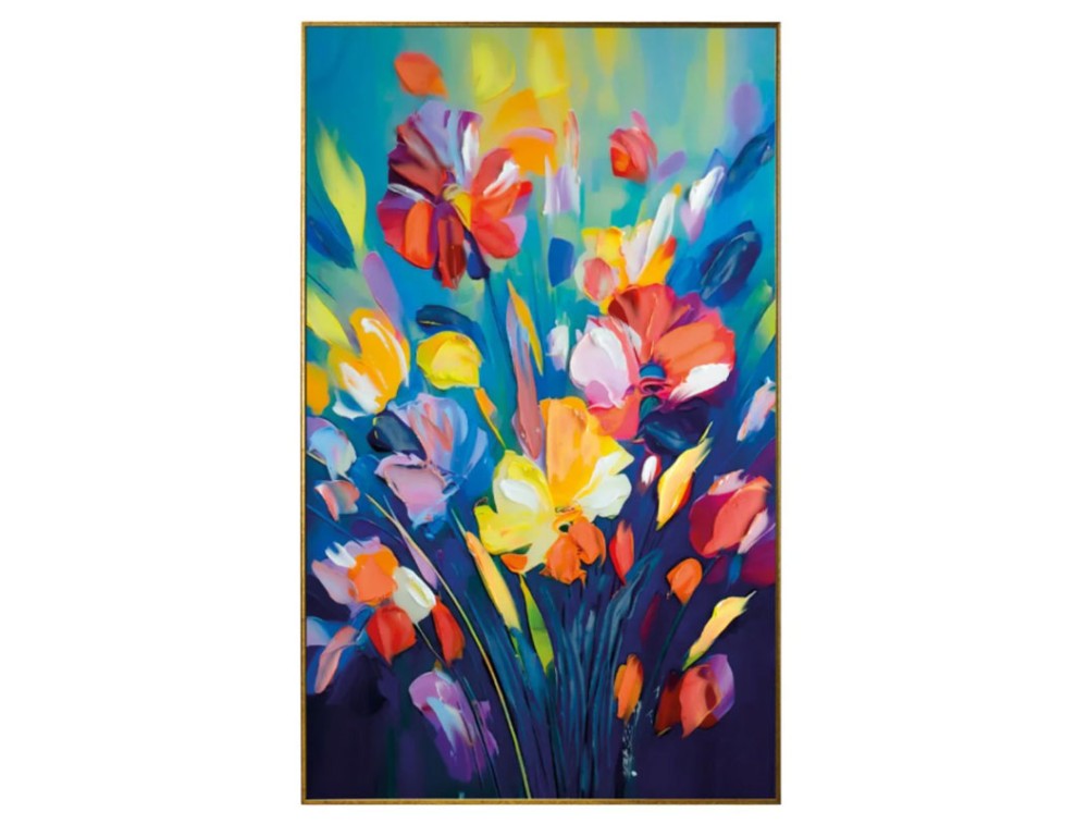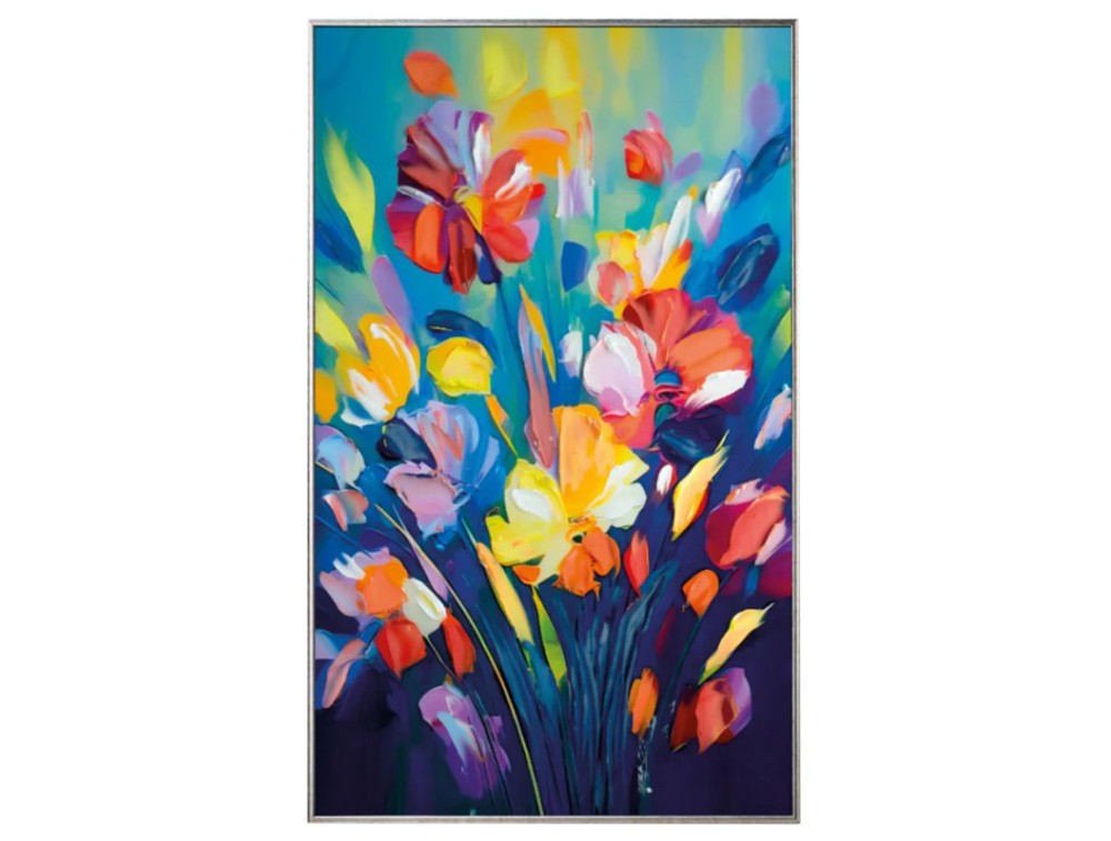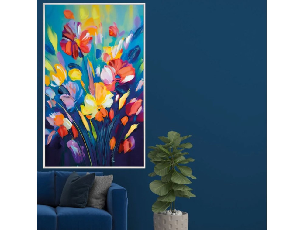 Blumenbild, gedruckt auf hochwertigem Polymerpapier und auf eine MDF-Platte mit hoher Dichte aufgebracht. Jedes Bild ist handverziert mit glänzenden Harzen, Kristallen und farbigen Steinen. Ton-in-Ton-Pinselstriche und Strukturpasten verleihen dem Kunstwerk zusätzliche Eleganz. Ein Rahmen in Weiß, Gold oder Silber ist im Lieferumfang enthalten. Ideal für Küche, Wohnzimmer und Schlafzimmer.