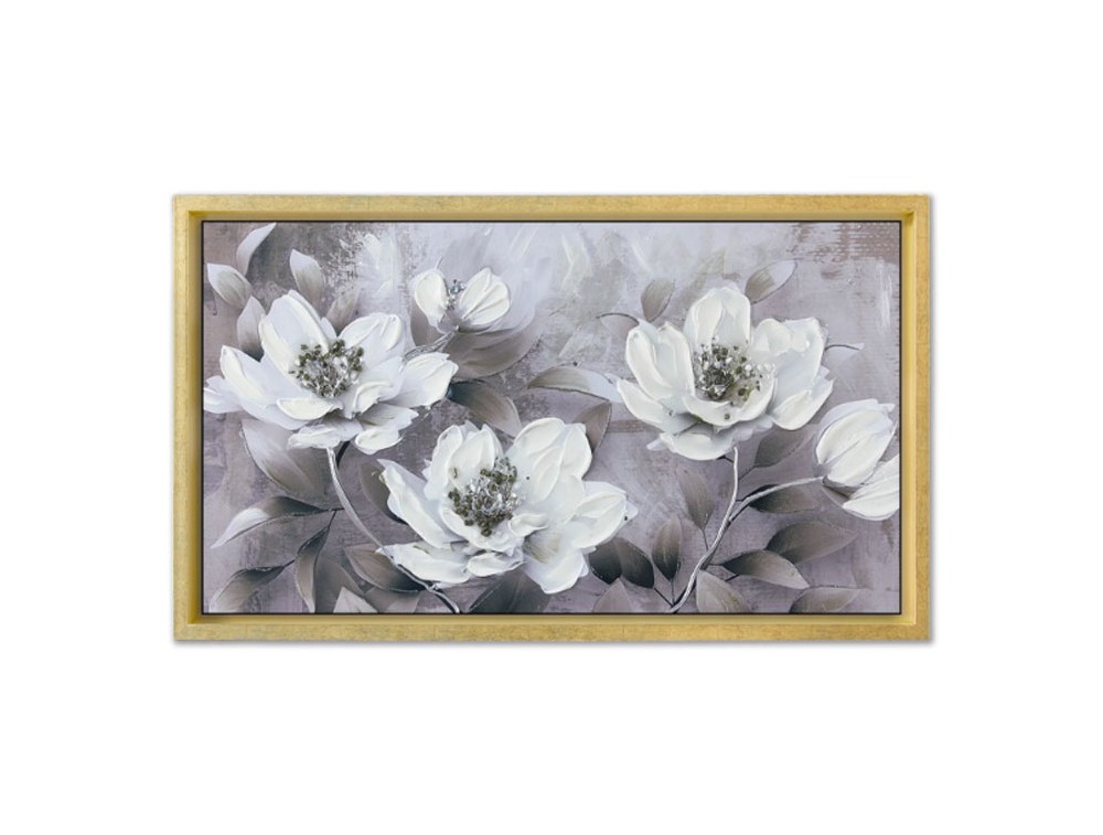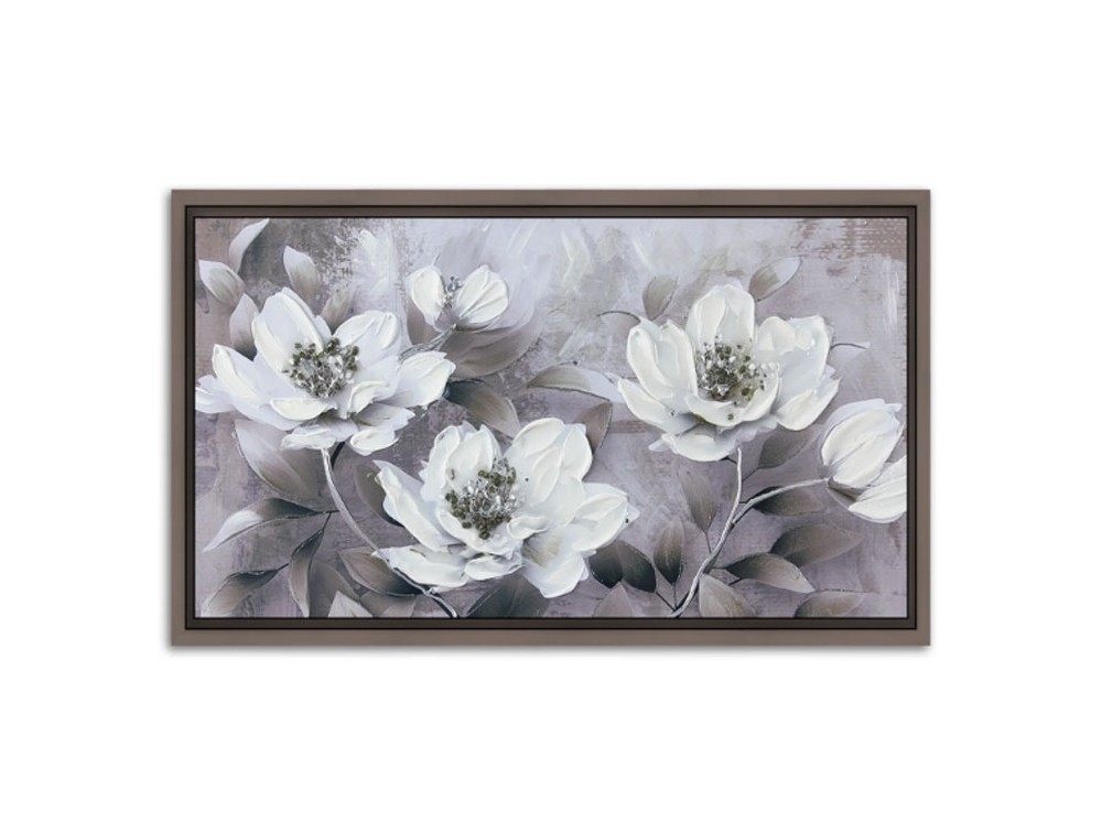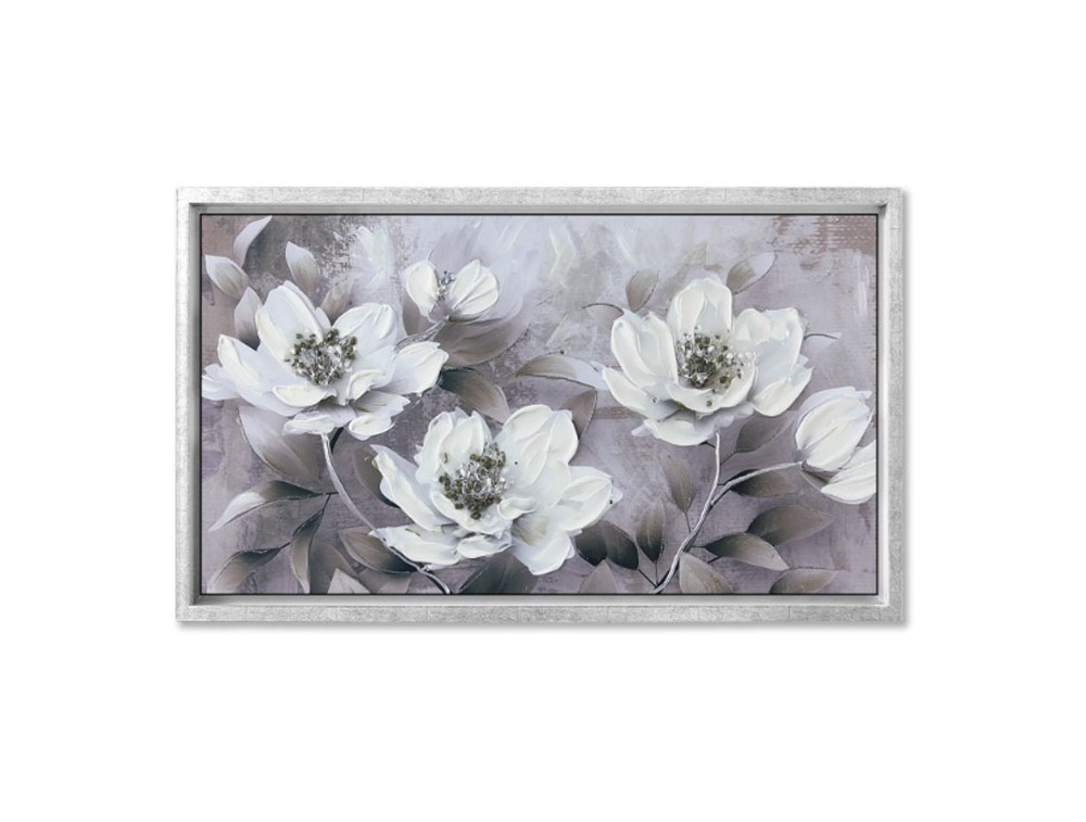 Blumenbild, gedruckt auf hochwertigem Polymerpapier und auf eine MDF-Platte mit hoher Dichte aufgebracht. Jedes Bild ist vollständig von Hand mit glänzenden Harzen, Kristallen und farbigen Steinen verziert. Ton-in-Ton-Pinselstriche und Strukturpasten setzen zusätzliche Akzente. Ein Rahmen in Weiß, Gold, Taubengrau oder Silber ist im Lieferumfang enthalten. Ideal für Küche, Wohnzimmer und Schlafzimmer.