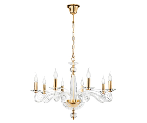 Dieser Kronleuchter ist mehr als nur ein Objekt, er ist ein echtes Stil-Statement. Stellen Sie sich vor, Sie betreten ein elegantes Esszimmer: In der Mitte des Raumes, über einem großen Tisch hängend, ist dieser Kronleuchter der unangefochtene Protagonist. Seine sechs oder acht Kristallarme ähneln Eisskulpturen und fangen jede Lichtquelle ein und reflektieren sie. Goldene Details wie die Lampenfassungen und die Aufhängekette verleihen einen Hauch von Opulenz und bilden einen perfekten Kontrast zur Transparenz des Glases. Der Versand ist kostenlos und die Garantie beträgt zwei Jahre.