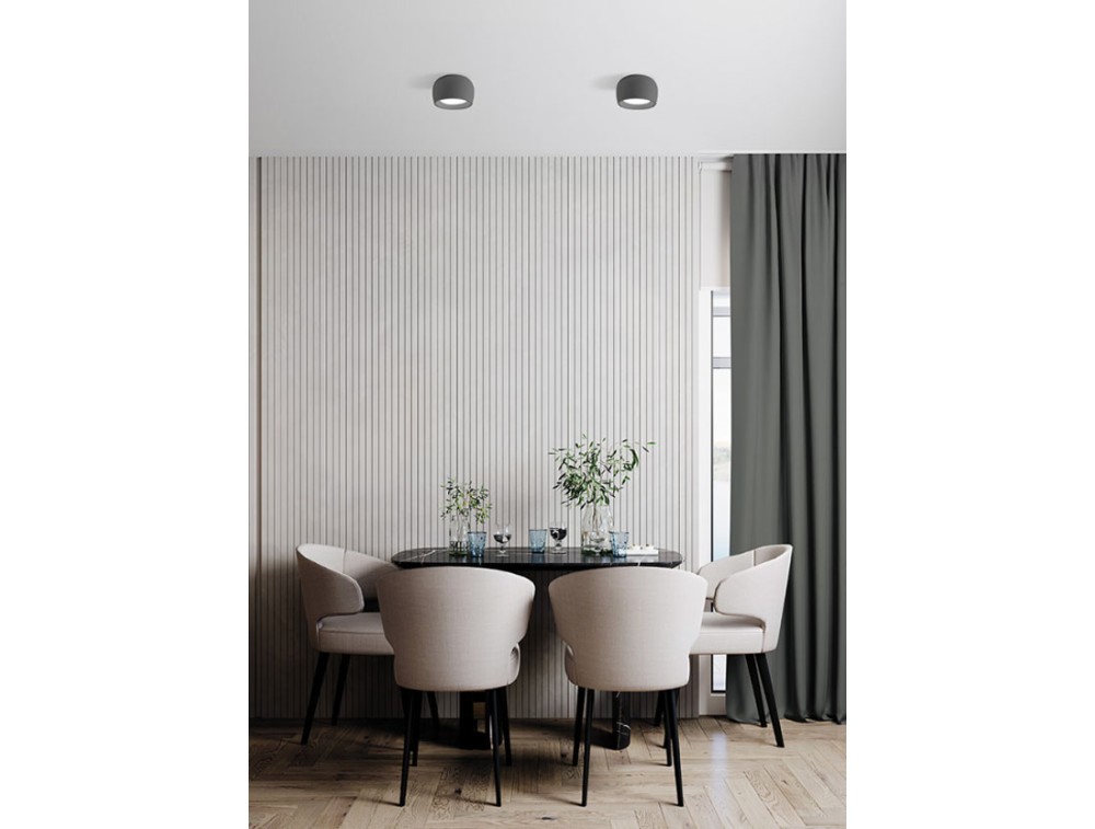 Gips-Deckenleuchte, erhältlich in Quarzgrau oder Weiß mit GX53-Fassung. Sorgt für eine angenehme, diffuse Beleuchtung im ganzen Raum. Ideal für Räume, in denen Design eine wichtige Rolle spielt. Perfekt für Küchen, Wohnzimmer, Flure und Schlafzimmer.