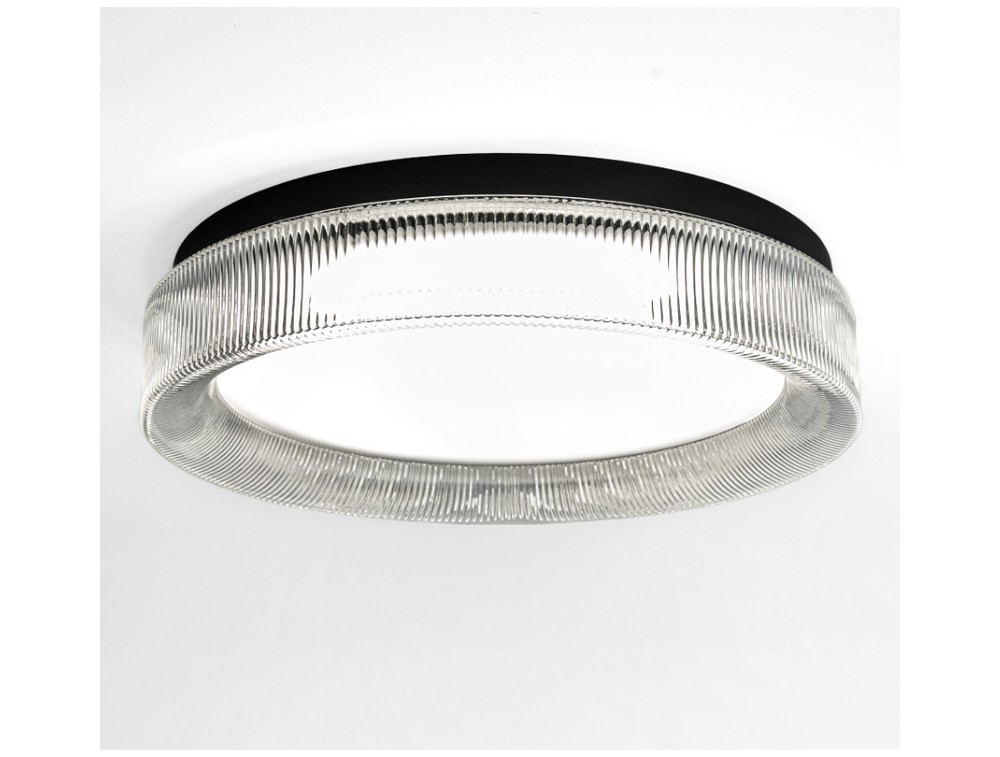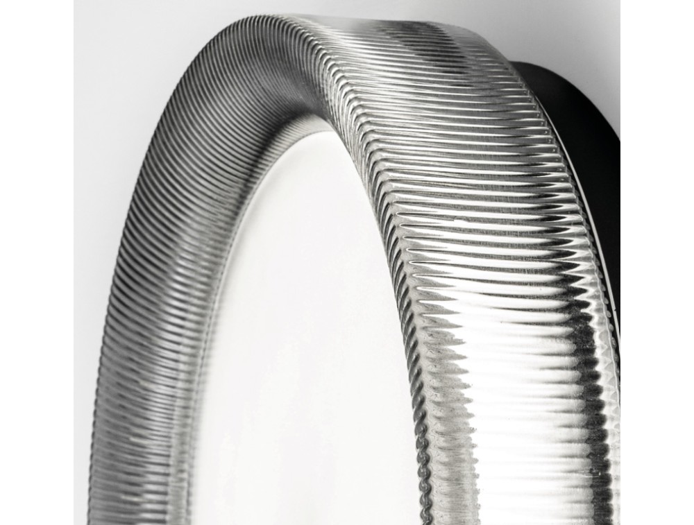 Eine Kollektion, die durch ihre klare Linienführung und Symmetrie besticht und sich durch ihr formschönes Glas auszeichnet. Erhältlich in Satinweiß, Rauchglas und Klarglas. Gefertigt aus Aluminium und Glas, eignet sie sich sowohl als Deckenleuchte als auch als Wandleuchte. Diese Lampe ist ein kleines Meisterwerk der Textur und Lichtbrechung. Sie spielt gekonnt mit der Kostbarkeit des Glases und erinnert fast an ein Juwel oder geschliffenes Kristallglas. Ideal für alle, die ein raffiniertes Detail suchen, das Blicke auf sich zieht. Als Wandleuchte passt sie perfekt in einen eleganten Flur, über das Bett oder in ein Designer-Badezimmer (in der Nähe des Spiegels). Als Deckenleuchte ist sie ideal für kleinere Räume wie begehbare Kleiderschränke oder Eingangsbereiche.