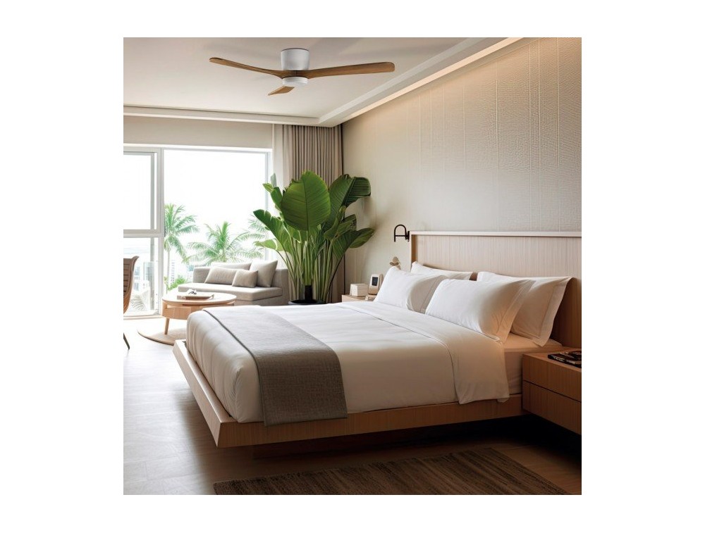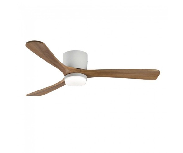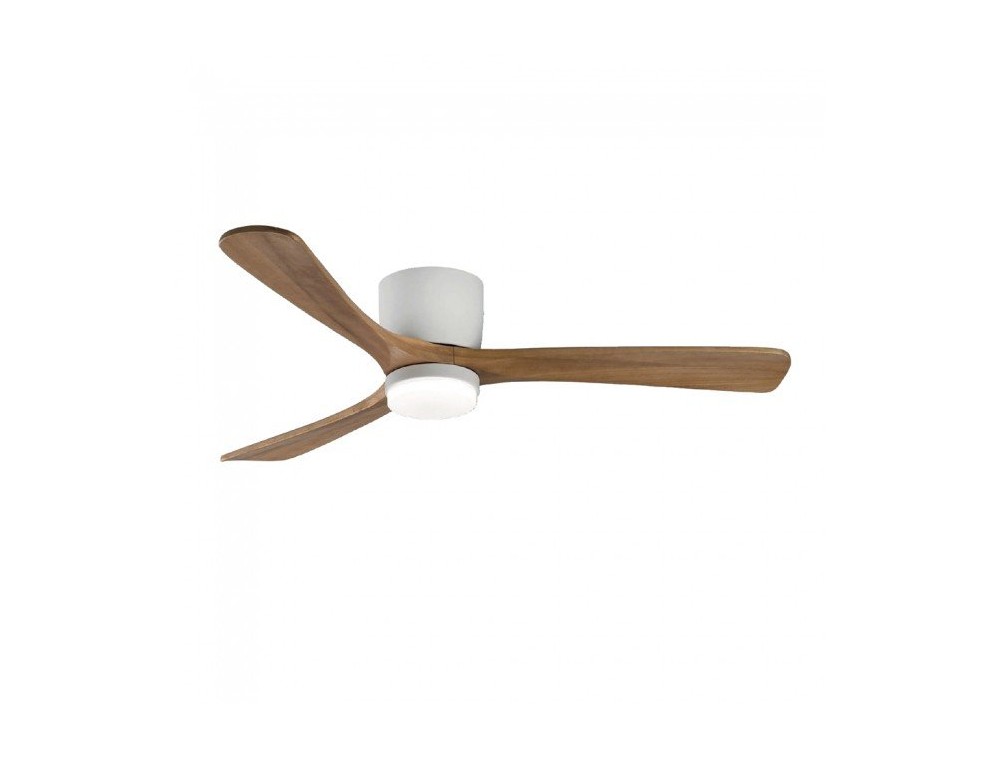 Ventilator mit geräuschlosen Flügeln aus natürlichem und weißem Holz, perfekt für die Installation in Räumen mit nordischer Dekoration. Sechs Rotationsgeschwindigkeiten, Brise-Funktion, Winter-Sommer-Rückwärtsrotation und Timer. 22-W-LED-Beleuchtungsset mit drei Farbtemperaturen. Ideal für Räume größer als 20 m2. Fernbedienung im Lieferumfang enthalten*.