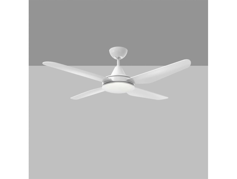 ACB-Ventilator mit weißem Rahmen, 30-W-Gleichstrommotor, 6 Geschwindigkeitsstufen, 4 ABS-Flügel, Timer, Fernbedienung und LED-Beleuchtung. Sommer-/Winterfunktion. Geeignet für Schrägdächer.