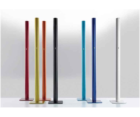 esign-Stehlampe mit Basis aus lackiertem Stahl und Struktur aus lackiertem Aluminium, erhältlich in verschiedenen Farben wie Bernstein, Weiß, Rot, Gelb, Elektroblau, Saphirblau und Smaragdgrün. Lampe mit verspieltem Charakter, einem Hauch von Design und Farbe, die dank der Innovation der LED-Quelle gleichzeitig eine optimale Lichtleistung garantiert. Ideal in Designumgebungen.
