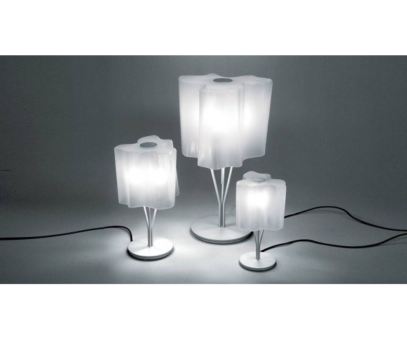 Artemide Beleuchtung, Design Tischlampe mit Diffusor aus geblasenem Glas und Aluminiumstruktur.