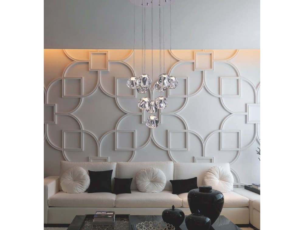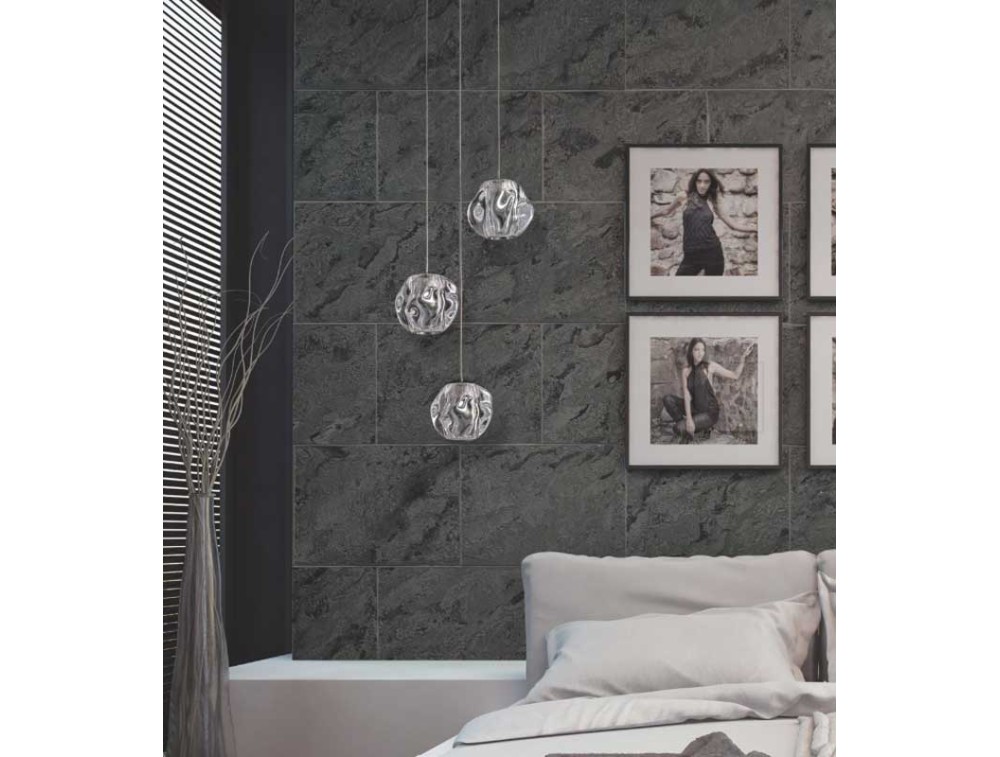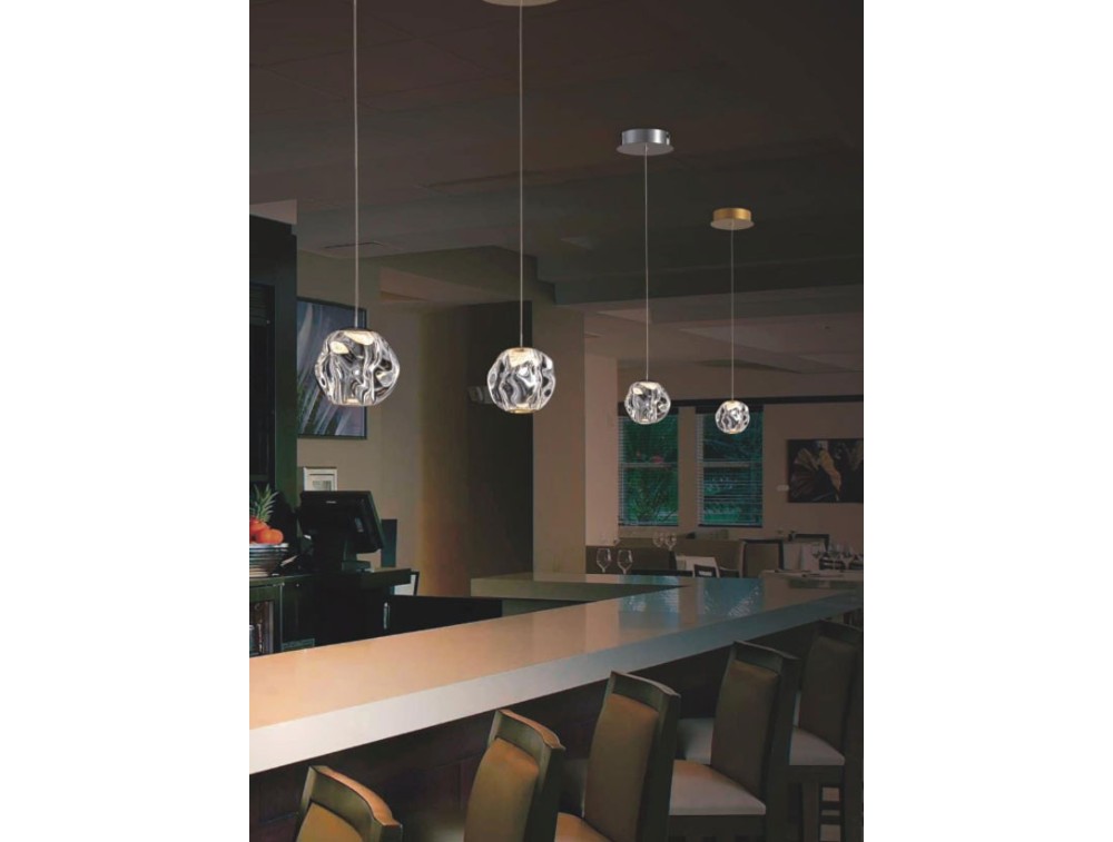 Wie ein Kieselstein, von der Zeit geglättet und von den Elementen geformt, erzeugt diese Leuchte facettenreiches Licht. Gefertigt aus Metall mit Acrylglasdiffusor, erhältlich in poliertem Chrom oder satiniertem Gold. Ideal für Küche, Wohn- und Schlafzimmer. Mit integrierter LED-Beleuchtung.