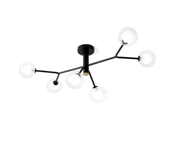 Die sechs Glaskugeln haben einen Durchmesser von Ø12 cm und sind auf dem schwarz lackierten Metallrahmen montiert, mit einem kleinen Detail in satiniertem Gold.