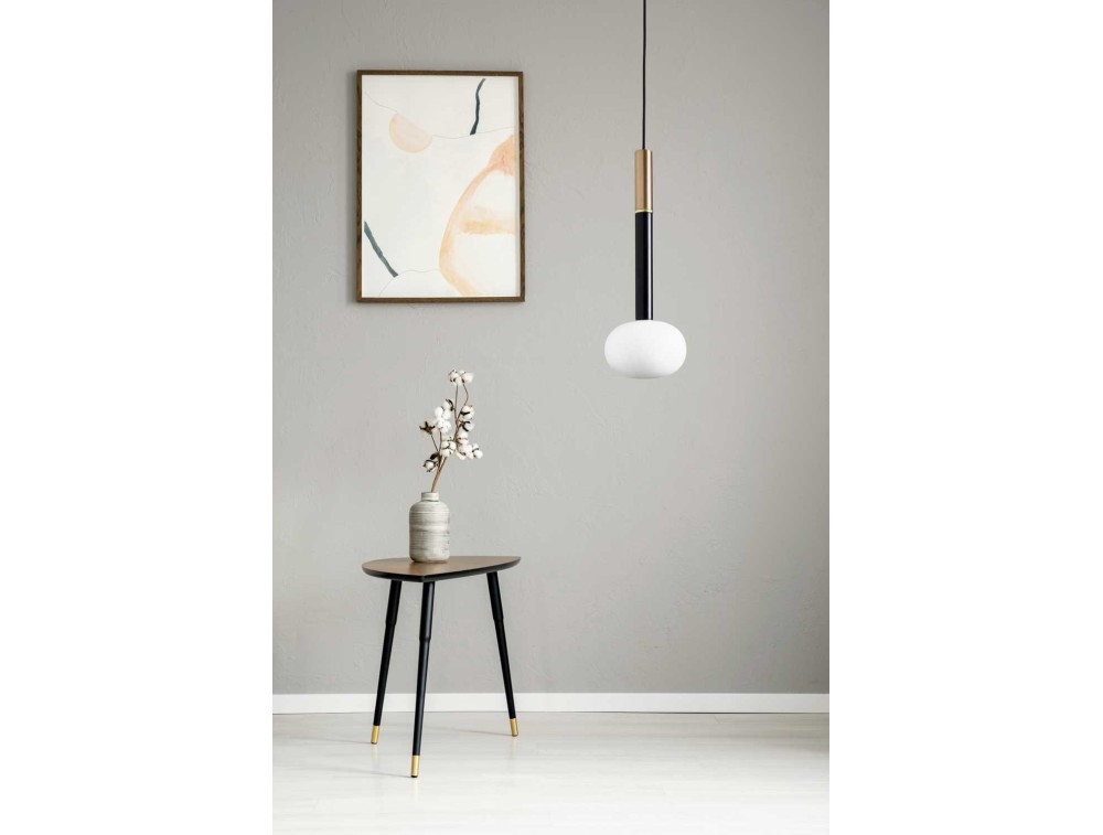 Kronleuchter mit raffiniertem und besonderem Design, ideal sowohl für die Beleuchtung des Nachttisches im Schlafzimmer, aber auch für andere Innenräume, sowohl im Wohn- als auch im Gewerbebereich, eine moderne Lampe mit schwarzer Metallstruktur und Gold- oder Kupferdetails