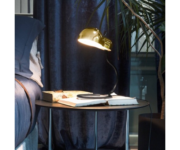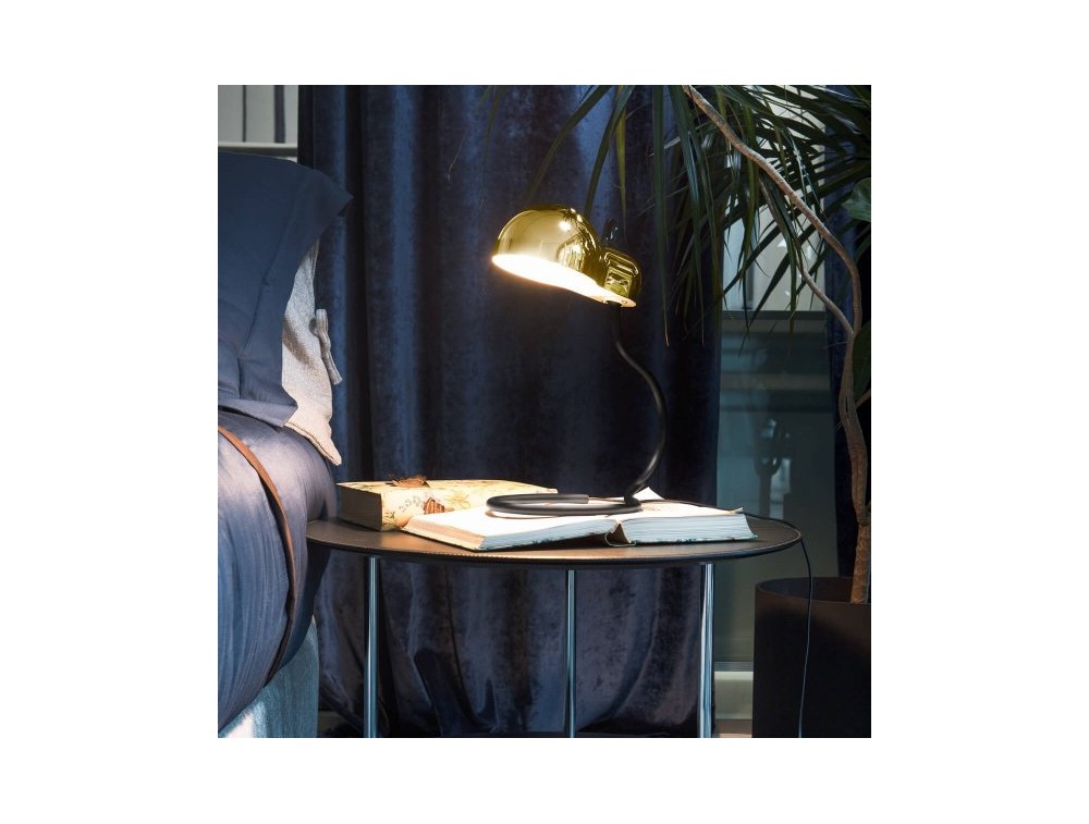 Die Form ähnelt der einer Maus mit Schwanz. Die Schale enthält die LED-Lichtquelle und die Schlitze im oberen Teil haben die Funktion, Wärme abzuleiten und direkte Blendung zu vermeiden. Der Schalter ist bewusst dem Originalmodell nachempfunden und der Reflektor erlaubt Ihnen, das Licht nach Ihren Wünschen zu lenken. Auch in einer Sonderedition erhältlich: Gold/Schwarz, komplett Rot oder Chrom. Empfohlen als Schreibtisch- und Nachttischlampe. Ideal auch als Geschenkidee.