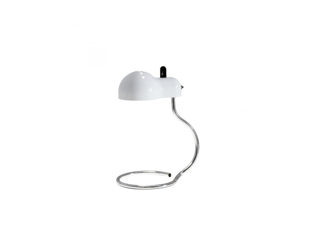 Minitopo ist eine Tischlampe im Vintage-Stil, die 1970 von Joe Colombo entworfen wurde. Die Struktur dieser Tischleuchte besteht aus verchromtem Metall mit einem Diffusor, der in verschiedenen Farben erhältlich ist: Weiß, Schwarz, Chrom, Rot, Grün.