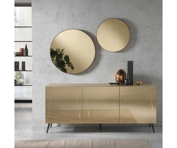 Anrichte ISIDE mit Schale aus Melamin und Türen aus MDF mit bronzefarbenem oder geräuchertem Spiegelglas.