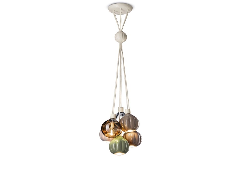 Dekorative Hängeleuchte FERROLUCE AFOXE bestehend aus Glas- und Keramikdiffusoren. Kronleuchter mit 6 farbigen Gläsern, hergestellt in Italien. Achtung: Die Farbauswahl bezieht sich nur auf den niedrigsten Lautsprecher wie auf dem Foto abgebildet. Die Komposition wird also immer eine Mischung aus Farben sein.