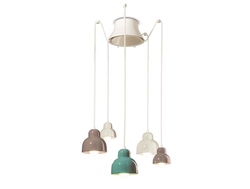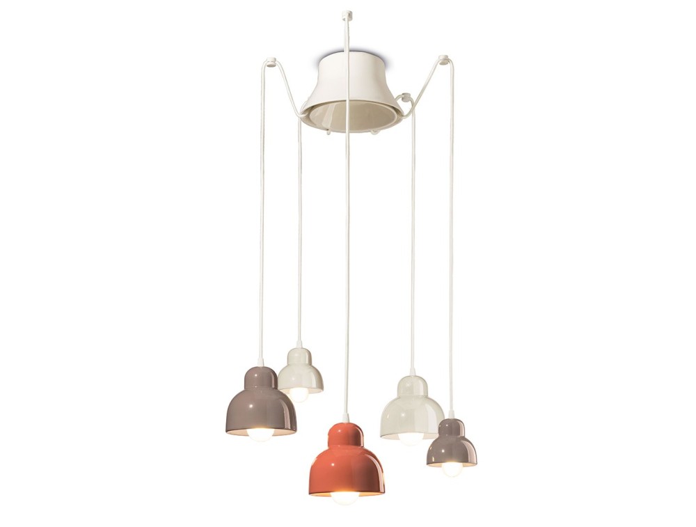 Aufhängung komplett aus Keramik. Ein archetypisches Objekt, das aus der darin enthaltenen Technologie entsteht: So wird das Hauptvolumen, das einen Versatz zur Lichtquelle erzeugt, zum Leitmotiv einer abwechslungsreichen Kollektion, in der das Beleuchtungselement im Mittelpunkt steht