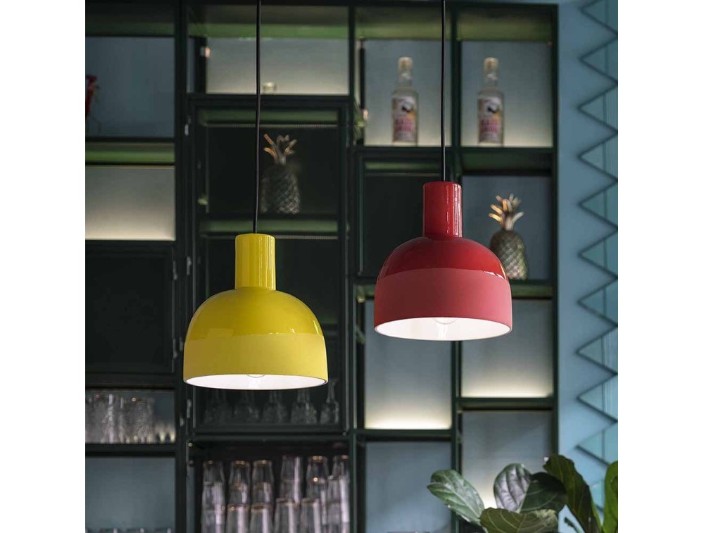 Sauber und harmonisch, was die Oberflächenbeschaffenheit noch deutlicher hervorhebt: ein teilweises Kristallbad, vom Keramiker handgefertigt und daher immer anders, das nach dem Brennen den Glanz des Produkts auf selektive Weise zum Vorschein bringt und die Farbe und Platzierung intensiviert die Betonung der krummlinigen Formen des Hauptvolumens. Ideal zur Beleuchtung einer Küche.