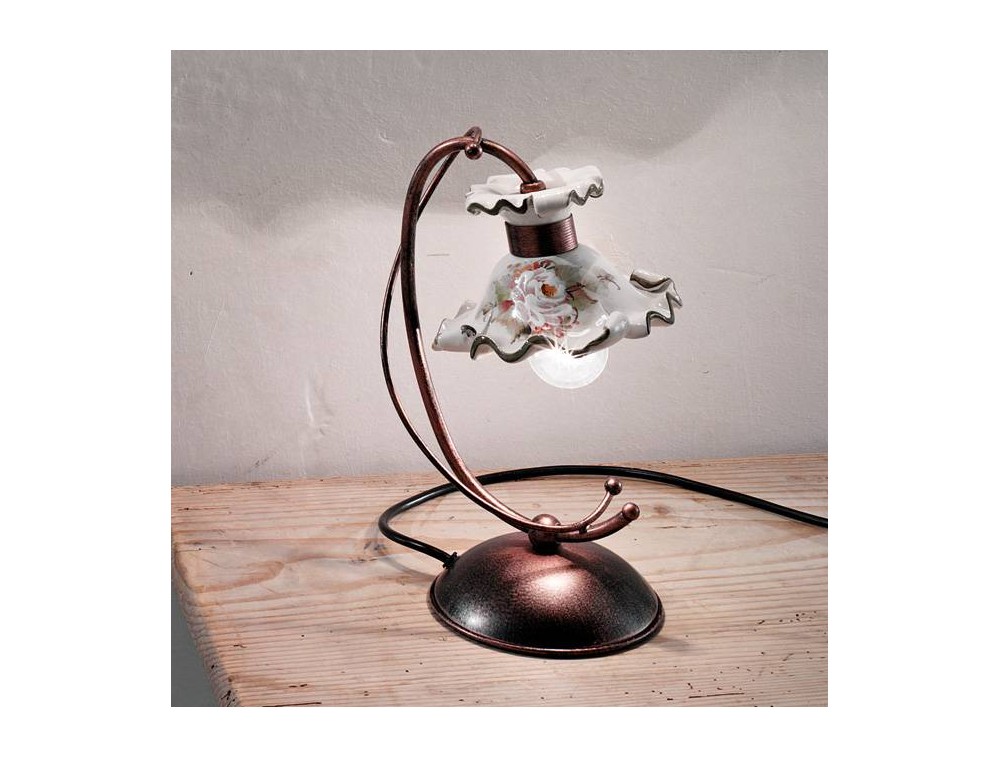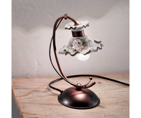 Rusty-Tischlampe aus polierter Keramik, per Hand mit floralen Motiven und Messingstruktur verziert. Schirm der Lampe mit wellenförmigen und gezackten Kanten, ideal für die Verbesserung einer rustikalen, Messingstruktur. Die Ferroluce-Lampen bieten eine große Auswahl an Dekorationen, die komplett in Handarbeit gefertigt werden, Details, die Sie individuell anpassen können.