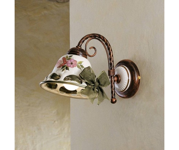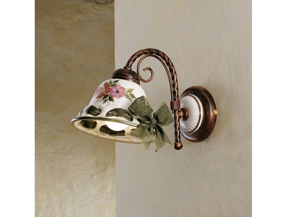 Rusty-Wandleuchte mit Schirm aus Keramik per Hand verziert und Metallstruktur, Band nicht enthalten. Lampe mit gewundenen Linien. Dank der Löcher entlang des gesamten Schirms der unteren Kante des Diffusors, ist es möglich, die Lampe mit farbigen Bändern entsprechend den Farbtönen in der Wohnumgebung des Kunden zu schmücken. Die Details auf Keramik sind ganz handgefertigt, das ist weil Sie sie auf Anfrage anpassen können.