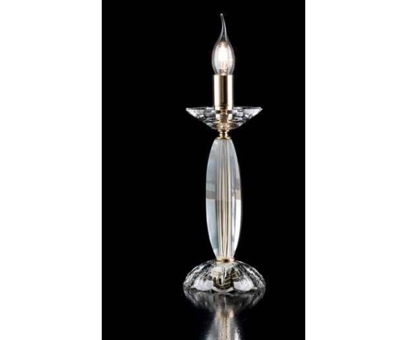 Ciciriello Beleuchtung, klassische Tischlampe aus Kristall und transparentem Glas, goldfarbene Details.