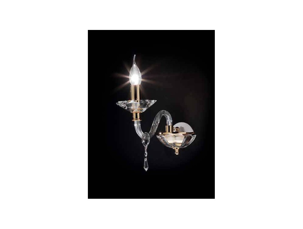 Ciciriello Beleuchtung, klassische Wandleuchte aus Kristall und transparentem Glas, goldfarbene Details.