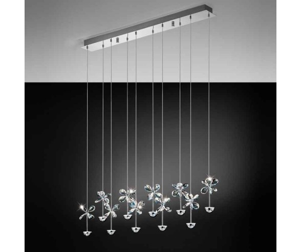 Sospensione led realizzata con struttura in acciaio inox e diffusore in cristallo. Raffinata, luminosa e dal design ricercato questa sospensione non passa inosservata grazie ai numerosi cristalli che compongono il diffusore che donano alla stessa, oltre che impatto visivo e carattere anche luminosità e riflessi. Ideale in stanze di ogni dimensione grazie alle tre misure disponibili.