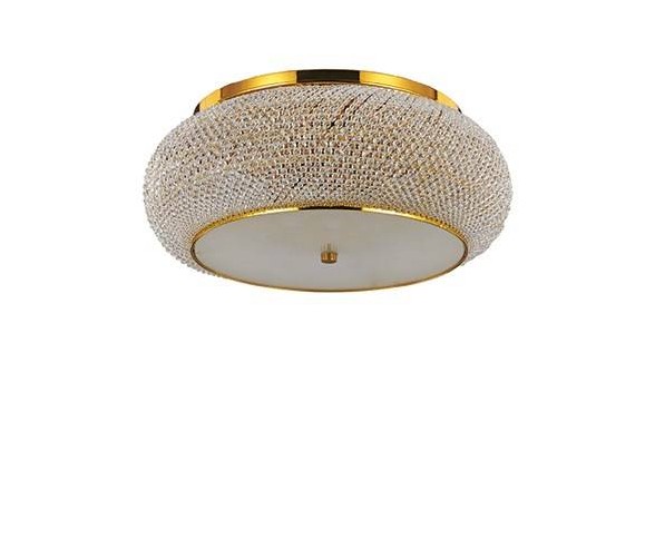 Ideal Lux Deckenleuchte mit Metallstruktur und Diffusor, bestehend aus Reihen von gemahlenen Kristallperlen und geschlossenem Boden durch sandgestrahltes Rundglas.
