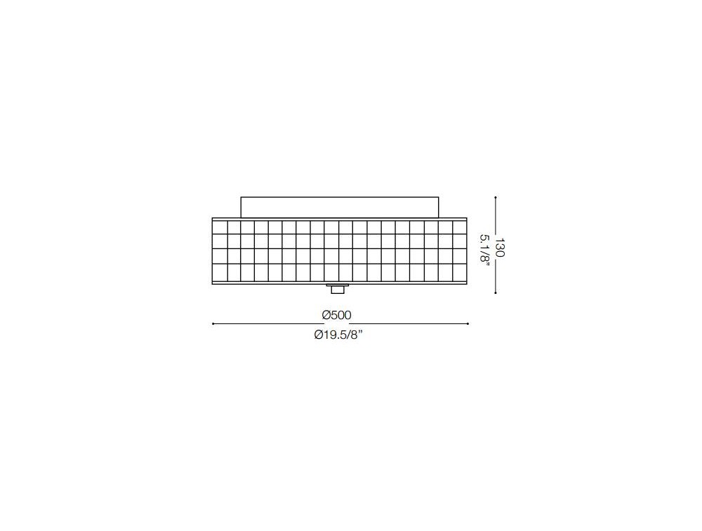 Deckenleuchte aus verchromtem Metallstruktur- und Details. Der Diffusor ist mit gemahlenen Kristallelementen angereichert und am Ende durch ein sandgestrahltes Glas verschlossen. Eine Leuchte, die sich dank ihrer eleganten und raffinierten Linie besonders für Wohn- und Schlafräume eignet.