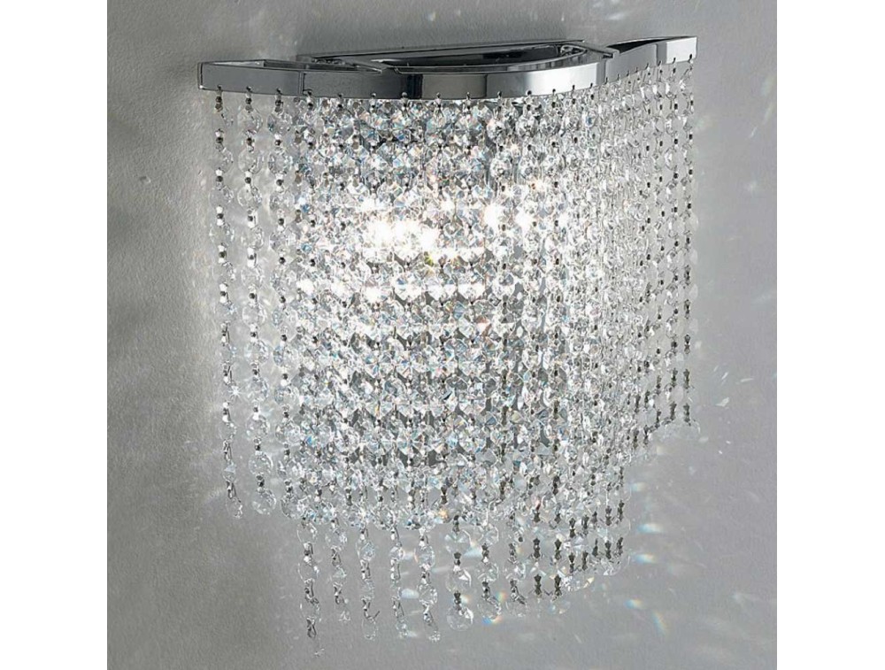 Wandlampe mit verchromtem Metall und Kristallrahmen.