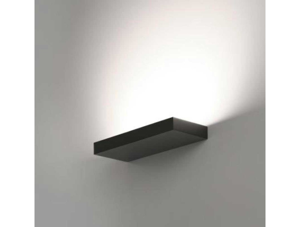 Wandleuchte mit rechteckiger Aluminiumstruktur und Acryldiffusor, komplett in strukturiertem Weiß oder Schwarz. Interner Schalter zum Wechseln der Lichtschattierungen
