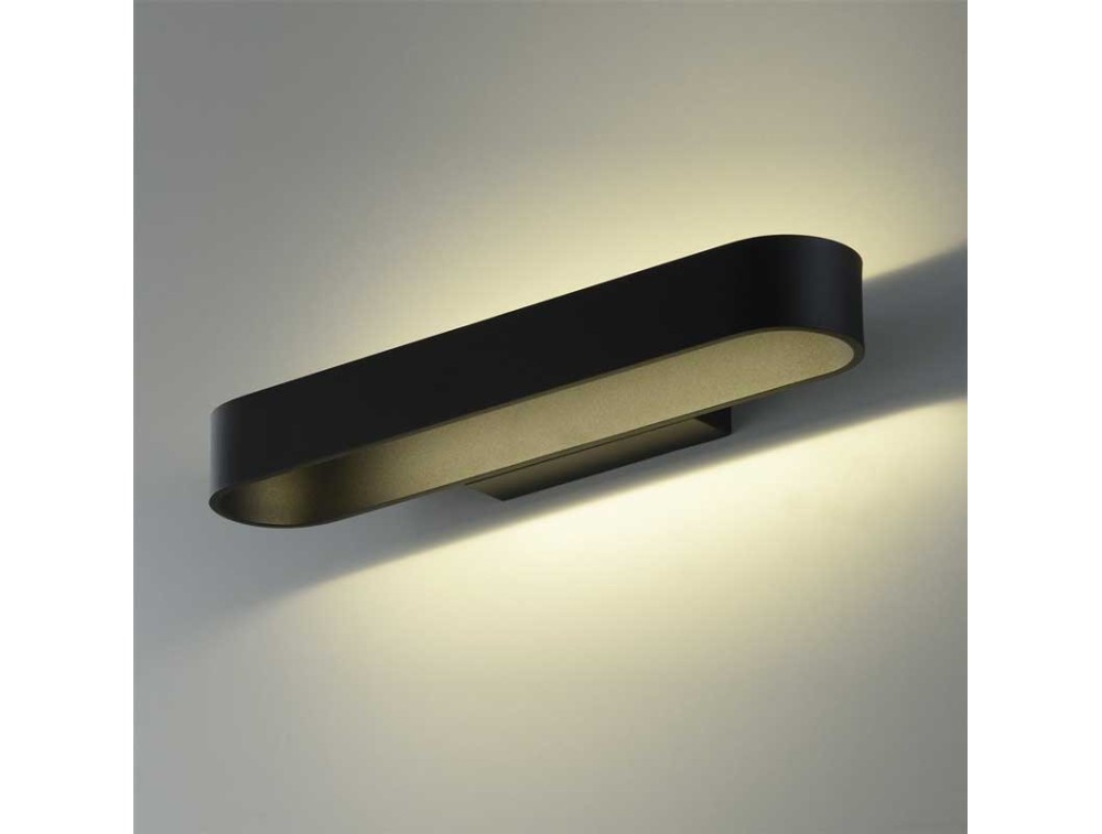 LED-Wandleuchte aus Metall und weißer Methacrylat-Schirm. Klare und saubere Designer-Lamp, seiner Schirm aus helle Farbe mit einer rundlichen und konkaven Strukturlinie. Dank der Struktur wird die Streuung des LED-Licht einfacher und homogener gemacht. Ideal in Räume, in denen eine funktionale Beleuchtung erforderlich ist.
