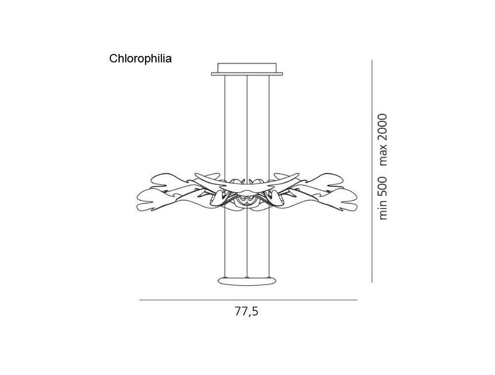 Chlorophila ist eine elegante und sehr dekorative Lampe. Seine Diffusorelemente, die wie in der Luft schwebende Blätter geformt sind und radial angeordnet sind, überlappen sich teilweise, um das Schattenspiel zu vervielfachen, und erzeugen einen dramatischen Effekt an der Decke, wenn die Lampe eingeschaltet ist. Leicht und ätherisch lässt sich dieses neue Projekt von Ross Lovegrove problemlos mit jedem Raum des Hauses kombinieren.
