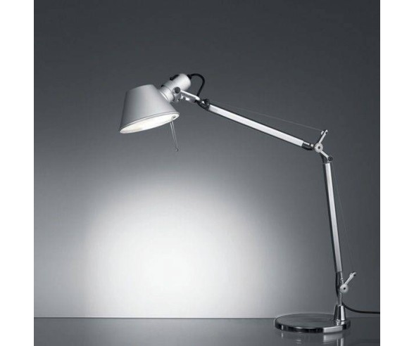 Artemide-Beleuchtung, LED-Tischlampe mit Basis und Struktur mit beweglichen Armen aus poliertem Aluminium.