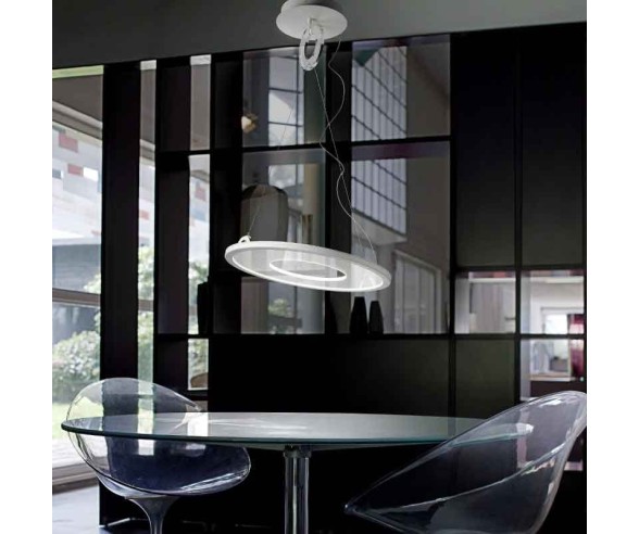 Die Pendelleuchte aus der Galileo-Kollektion von Braga Beleuchtung möchte durch ihre durchdachte, aber wirkungsvoll wirkende Form und dank des transparenten Materials, das sie zusammensetzt, die Idee eines leuchtenden Körpers vermitteln, der sich von den Leuten umher sehen und bewundern lässt . Eine Pendelleuchte, die in ihrer Einfachheit Büros, Schreibtische, Esstische versorgt oder einfach in der Mitte eines Raumes aufgestellt werden kann. Eine Einfachheit, die die Möbel nicht belastet und die Unterschrift von Made in Italy trägt.