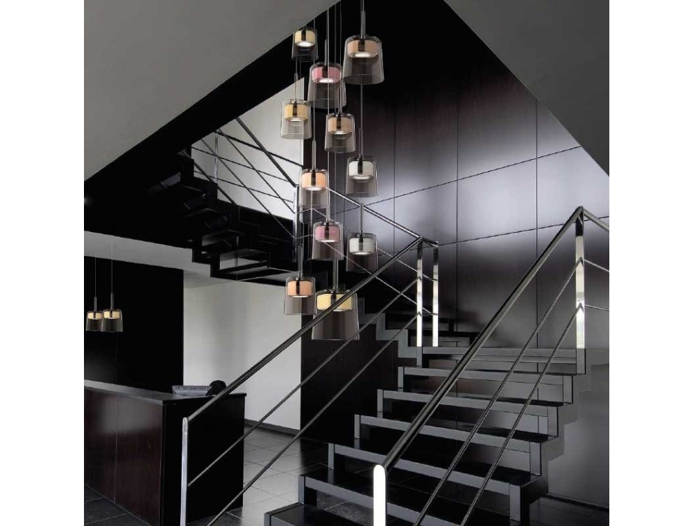 Hochmoderne Aufhängung mit neuem und originellem Design. Eine Pendelleuchte, die sich für Korridore, Schlafzimmer, Wohnzimmer, Treppen eignet ... für eine wirklich atemberaubende Beleuchtung, die dem Raum eine architektonische Note verleiht. Für diejenigen, die gerne mit Licht dekorieren, ist dies eine wirklich einzigartige Leuchte. Ein Produkt Made in Italy, erhältlich in verschiedenen Ausführungen, Chrom, Bronze, Gold, Kupfer oder Violett.