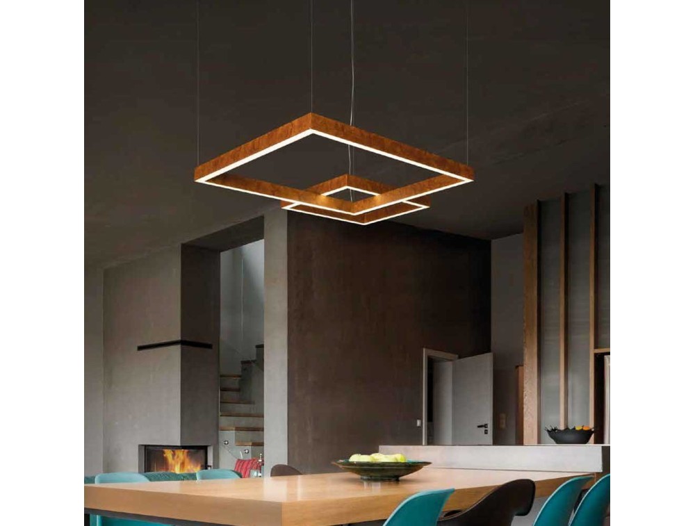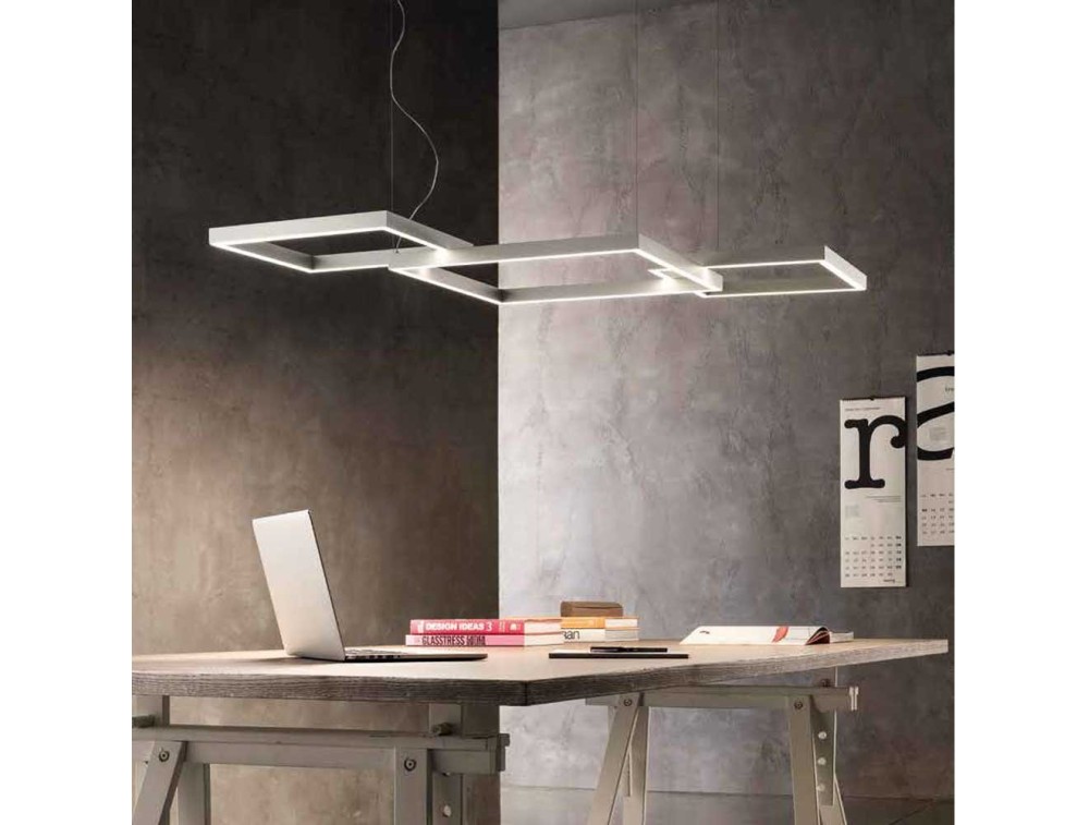 Hochmodernes Fahrwerk mit neuem und originellem Design. Eine Pendelleuchte für Korridore, Schlafzimmer, Wohnzimmer, Treppen ... für eine wirklich atemberaubende Beleuchtung, die dem Raum einen architektonischen Touch verleiht. Für diejenigen, die gerne mit Licht ausstatten, ist dies ein wirklich einzigartiger Beleuchtungskörper. A Made in Italy-Produkt. Erhältlich in verschiedenen Ausführungen: Weiß, Blattsilber, Blattgold, Grau, Schwarz, Rost, Eisen, Gold, Schwarzgoldblatt, Eisensilberblatt, Weißkupferblatt.