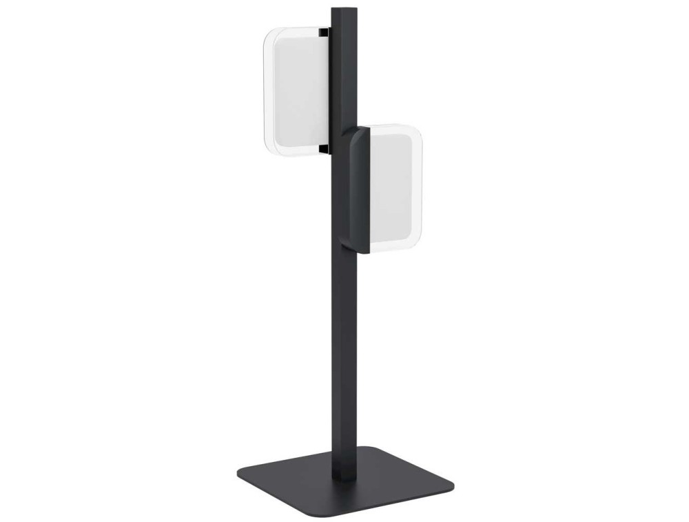 Die ERVIDEL LED-Tischleuchte besteht aus einem schwarzen Metallfuß, auf dem zwei Acrylkörper abwechselnd angeordnet sind. Die integrierten LEDs geben ein angenehm warmweißes Licht ab. Über einen Schalter am Kabel lässt sich die Leuchte bequem ein- und ausschalten. Diese minimalistische Tischleuchte fügt sich perfekt in moderne Einrichtungen ein und bietet eine besondere Beleuchtung im Schlafzimmer, Wohnzimmer, Esszimmer oder Flur.