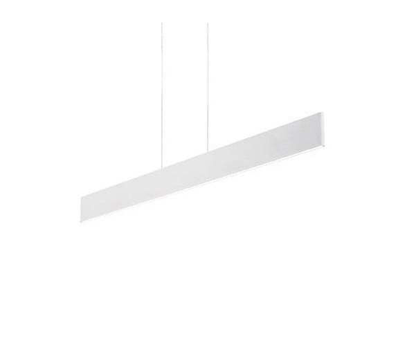 Ideal Lux-Pendelleuchte mit leichtem Korpus und Rosette aus Aluminium, lackiert mit mattweißer Pulverfarbe. Pendelleuchte mit längenverstellbaren Elektrokabeln.