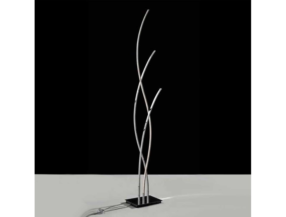 Stehlampe mit Gestell aus verchromtem Metall und Diffusor aus Acryl mit Kristalleffekt.