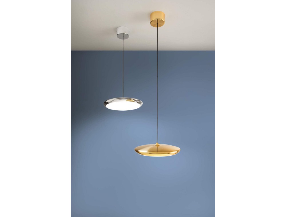 Vivaldi ist ein moderner Kronleuchter, der sich durch einen runden PMMA-Diffusor und einen Aluminiumrahmen auszeichnet, der in verschiedenen Farbausführungen in Gold, Weiß, Schwarz und Chrom erhältlich ist.