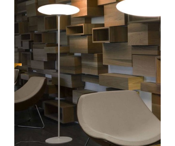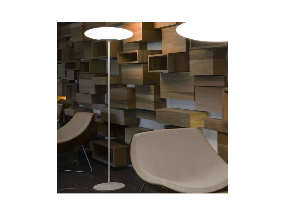 Linea light Stehlampe mit Lampenschirm aus Polyäthylen mit weißer durchscheinenden Farbe.