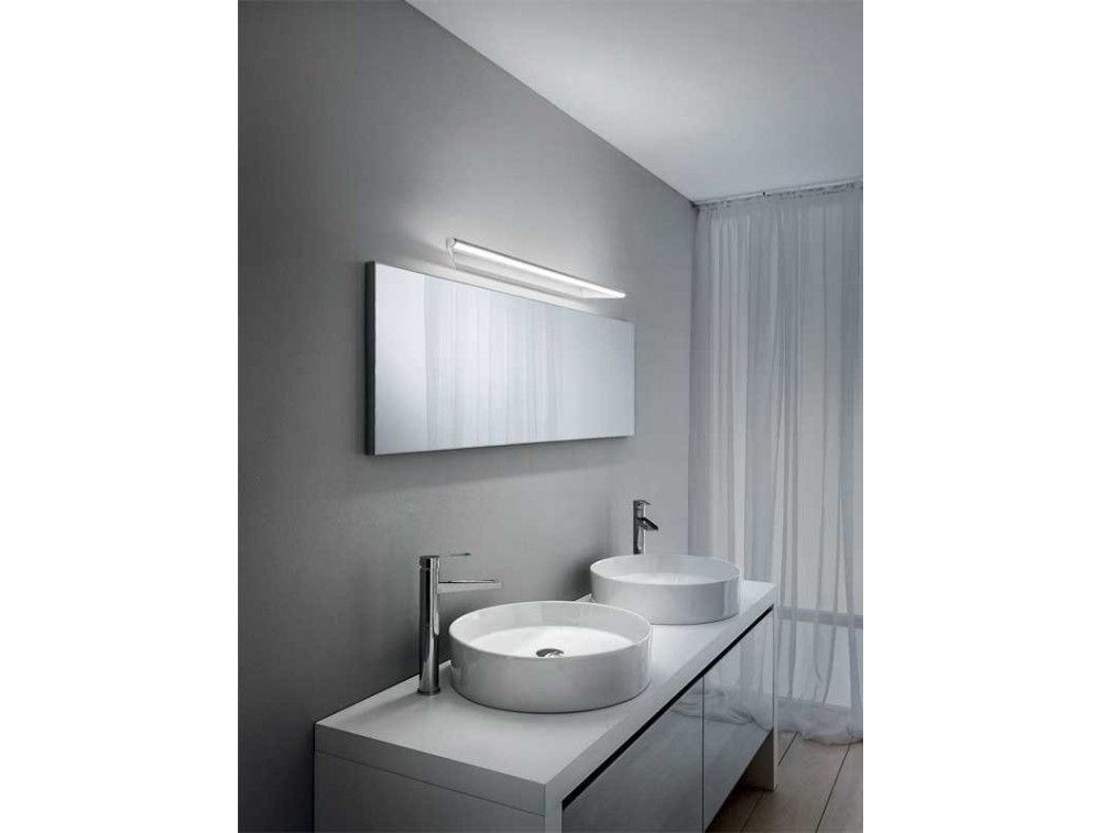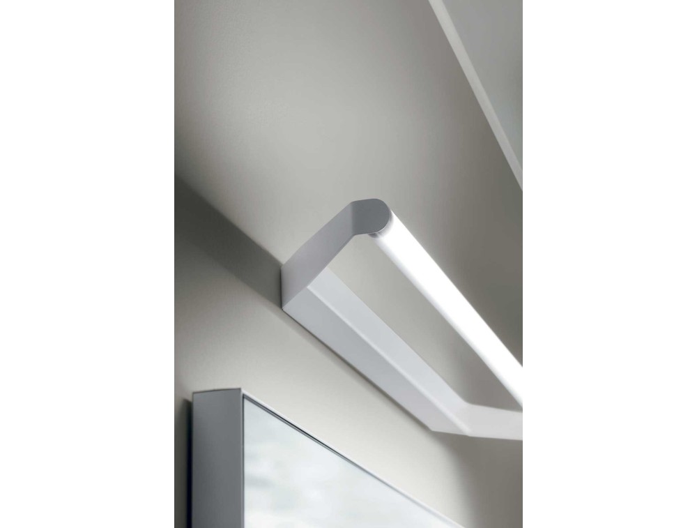 Linea Light hat diese LED-Wandleuchte mit einem modernen Stil geschaffen, die aus einem lackierten Metallstruktur besteht. Diffusor aus Polymethylmethacrylat. In drei Größen und zwei Farben erhältlich: geprägtes Weiß oder Weißchrom. Es ist ideal, wenn es auf Badezimmerspiegeln platziert wird. Das integrierte LED-Modul macht es zu einem sehr funktionalen Leuchtobjekt, da es den Raum diffus beleuchtet.