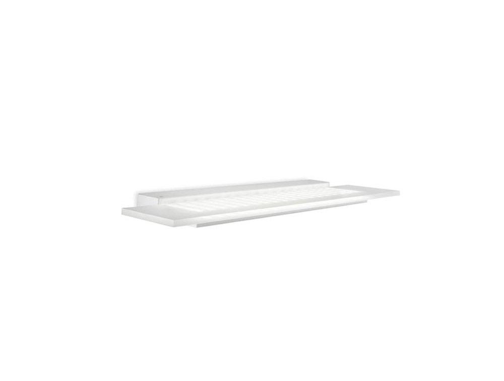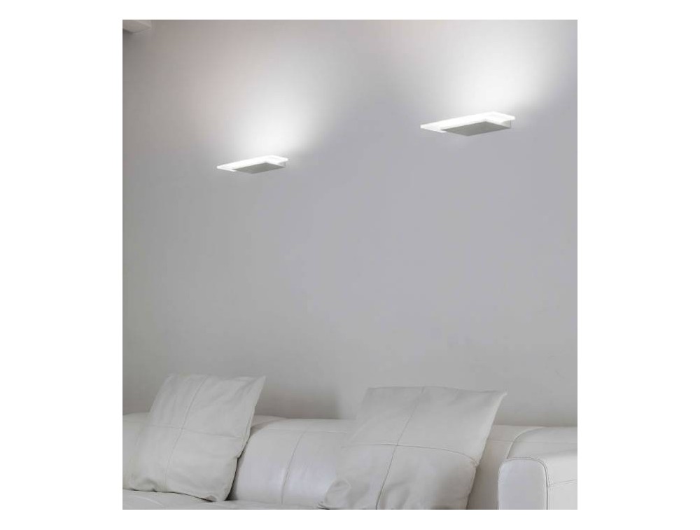 Linea Light Wandleuchte mit weißer Metallstruktur und satiniertem Polymethylmethacrylat-Lampenschirm.
