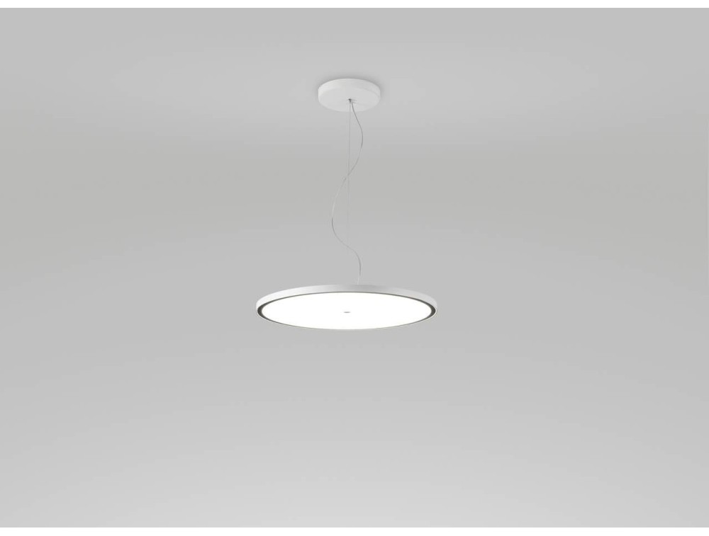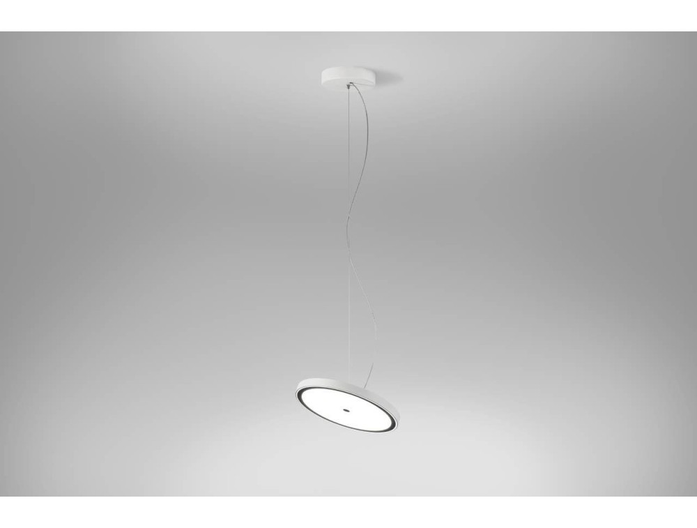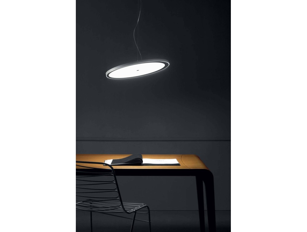 LED-Pendelleuchte mit vernickelter Aluminiumstruktur und Schirm aus satiniertem PMMA. Pendelleuchte mit einem vergnügten und gleichzeitig raffinierten Charakter. Ein dinamisches und funktionales Produkt. Es ist möglich das Schirm 20° zu kreisen. Dank die basic und reine Linie und die LED-Innovation, ist diese Lampe perfekt in Räume mit modernem Design.