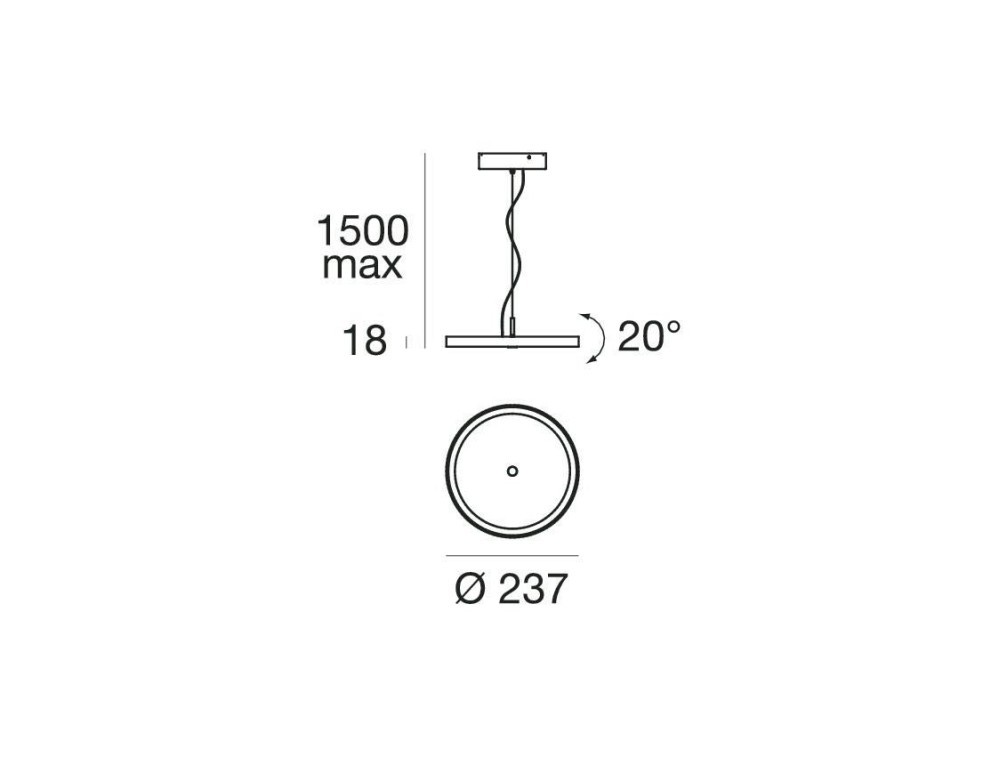 Durchmesser 23,7 cm; Höhe 1,8 cm; Kabelhöhe max 200 cm