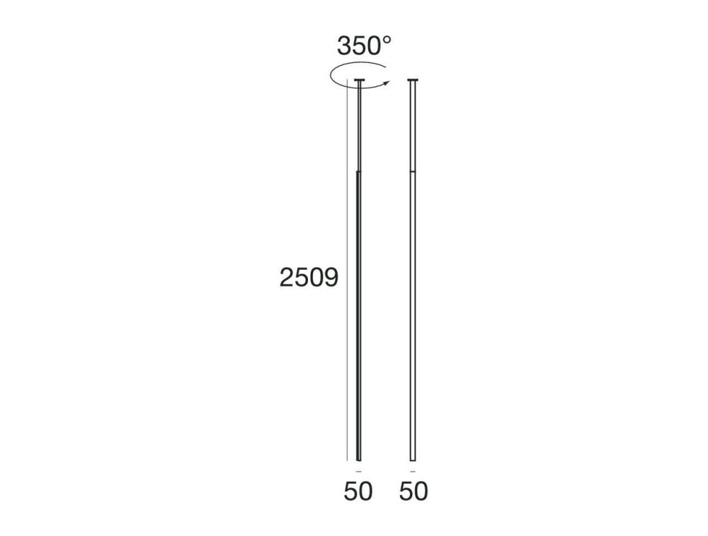 LED-Pendelleuchte, die aus einem geraden Element aus Kunstroff (PMMA) besteht. Lampe mit Deckenbefestigung mit Touch-Schalter und seitlicher Lichtemission. Der Körper der Lampe ist um 350° drehbar. Lampe mit einem linearem und modernen Design, die in Räume mit dem gleichten Stil geeignet ist. Sie ist perfekt in Ecken von Räumen, die funktionelles Licht benötigen.
