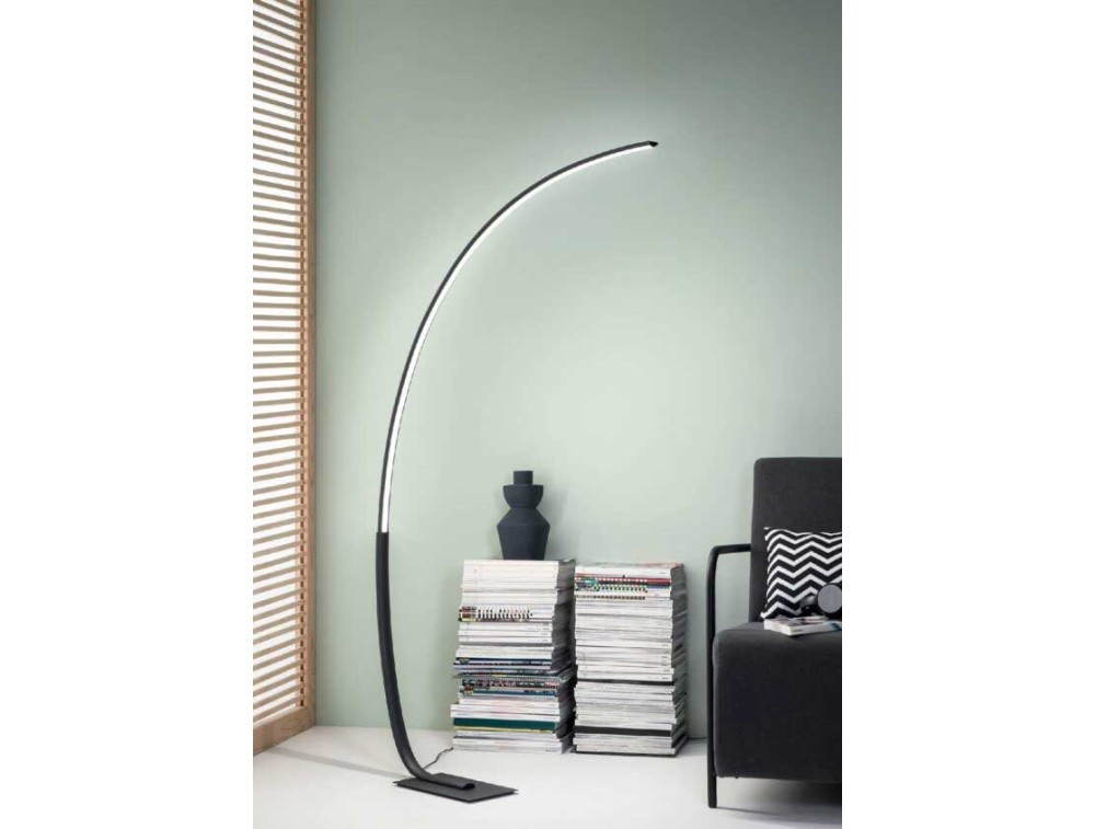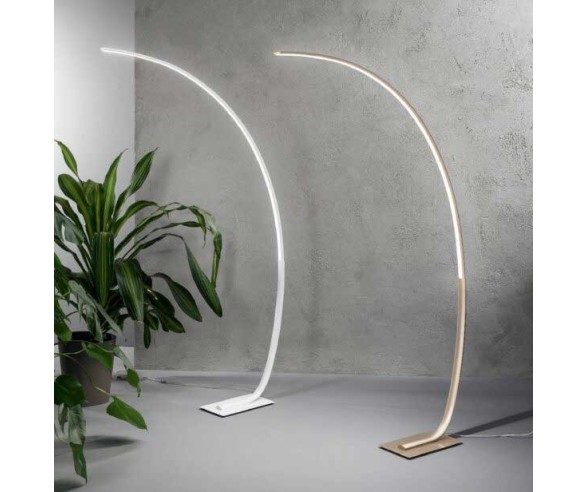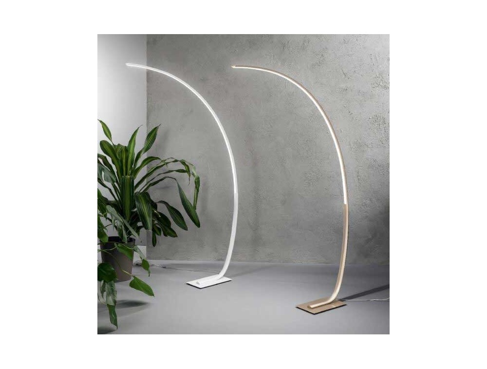 Weiße Steh- oder Bogenlampe mit modernem Design, perfekt für die Beleuchtung einer Ecke eines Wohn- oder Wohnzimmers, auch zwischen zwei Sofas. Hergestellt aus einer lackierten, gebogenen Metallstruktur und in drei Farben erhältlich mit integriertem, dimmbarem 3000K-LED-Licht zur Variation der Lichtintensität.