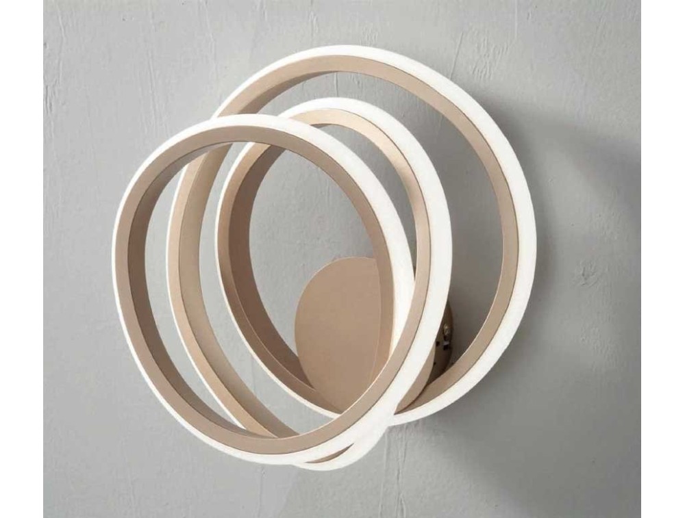 Eine neue LED-Wandleuchte aus der Golden-Kollektion mit modernem Design, hergestellt von der Marke Ondaluce, komplett aus goldfarbenem Metall, bestehend aus Kreisen oder Ringen mit integriertem 3000K-LED-Licht mit diffusem Licht, perfekt für die Beleuchtung und Einrichtung jedes Ihrer Bereiche gleichzeitig nach Hause
