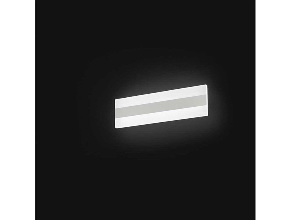 Perenz Beleuchtung, Wandleuchte aus mattweißem oder schwarz pulverbeschichtetem Metall mit satiniertem Acryldiffusor.